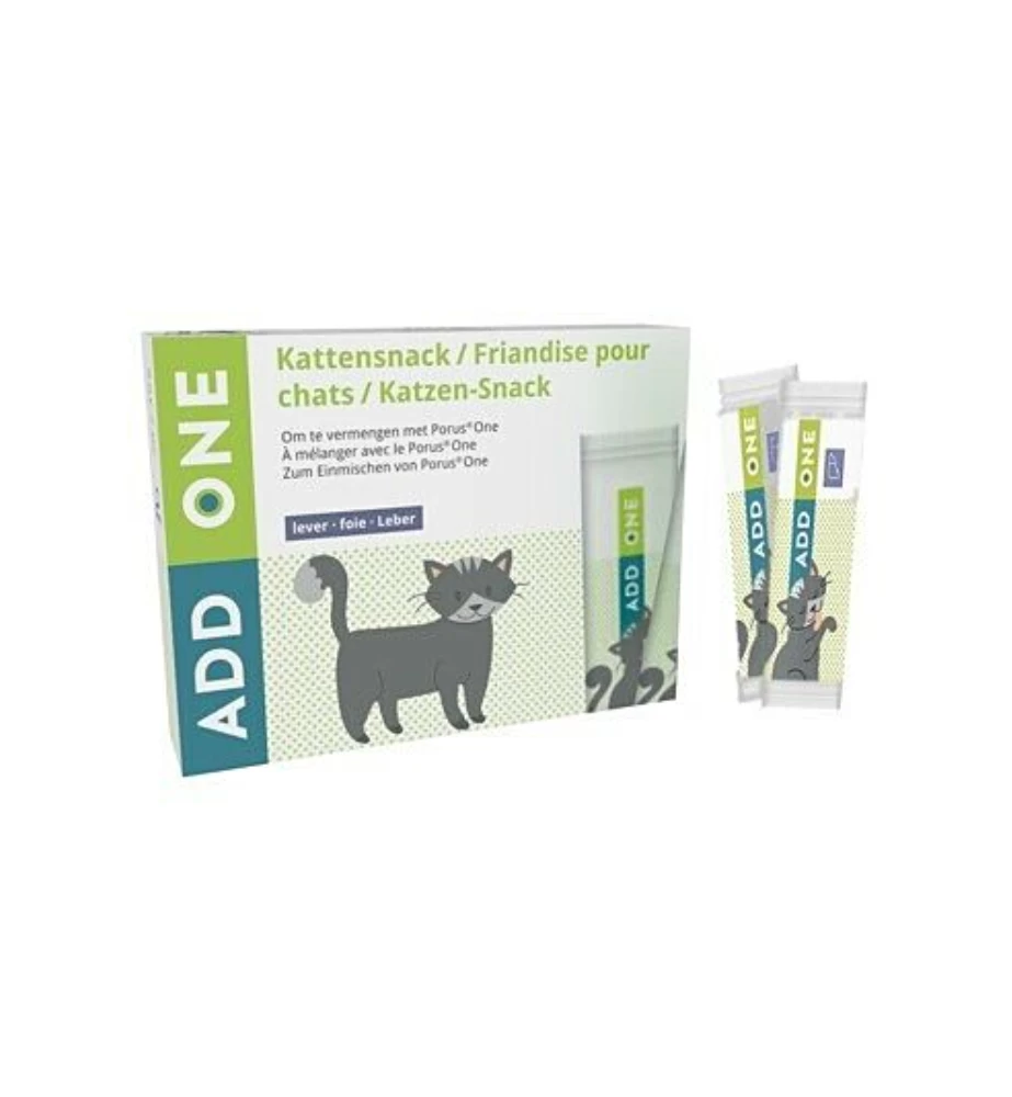 Add One Lever is een lekkere snack voor katten in de vorm van een romige leversaus die rijks is aan vocht en Omega-3 vetzuren. De Add One Lever is ook zeer geschikt voor het toedienen van de Porus One ter ondersteuning van de nieren. Add One bevat weinig calorieën, zelfs minder dan 10 kcal per stick. Deze kattensnacks bevatten geen toegevoegde suiker, kleur- of smaakstoffen en geen conserveermiddelen.