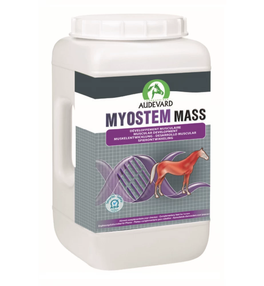 Audevard Myostem Mass is een aanvullend diervoeder dat rijk is aan essentiële en beperkende aminozuren en is ontworpen om voedingsondersteuning te bieden voor de spierontwikkeling van paarden die worden getraind en paarden die ouder zijn van vorm, herstellen van een ziekte en veulens in de groei.
