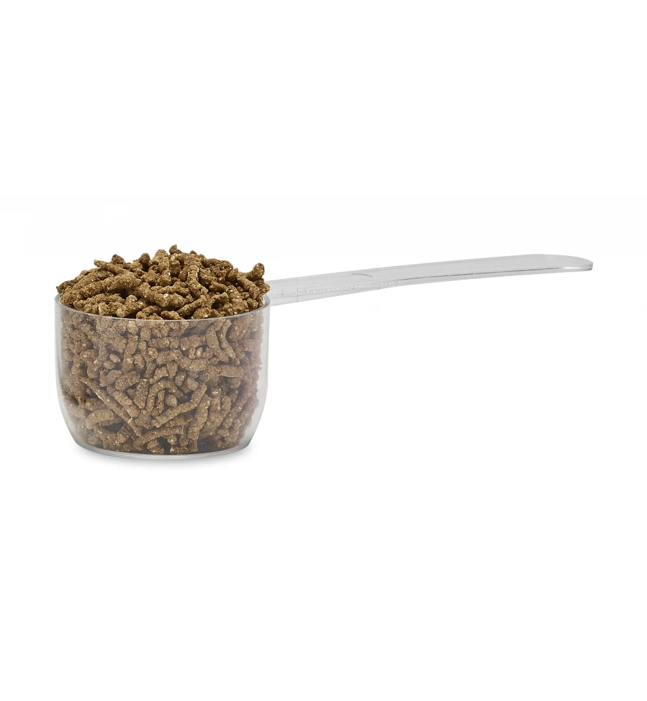 - Volwassen paarden: 4 maatschepjes per dag gedurende minimaal 3 weken.