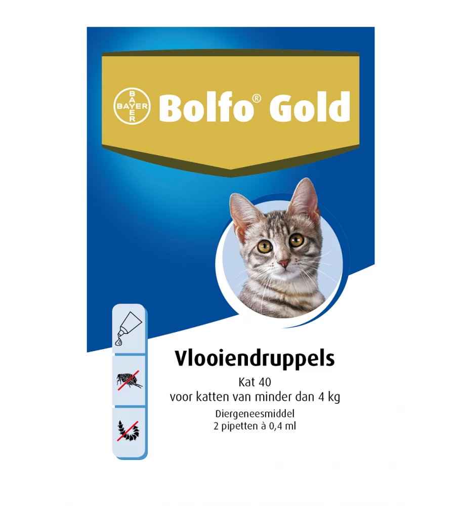 De Bolfo Gold spot-on is een snelwerkend anti-vlooien middel voor katten met een werkingsduur tot 4 weken. Naast de volwassen vlooien pakt Bolfo Gold ook de vlooienlarven aan. Het middel is werkzaam binnen 24 uur na toediening.