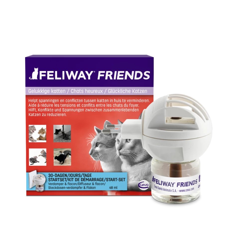 Felway Friends is een verdamper die feromonen verspreid om vechten en conflicten tussen katten in het huishouden tegen te gaan. Feromonen zijn natuurlijke rustgevende stoffen die een moederpoes verspreid zodat kittens zich op hun gemak voelen. De Plug & Play verdamper is gemakkelijk in gebruik, u hoeft deze alleen in het stopcontact te steken. De navullingen voor de verdamper zijn los na te bestellen.