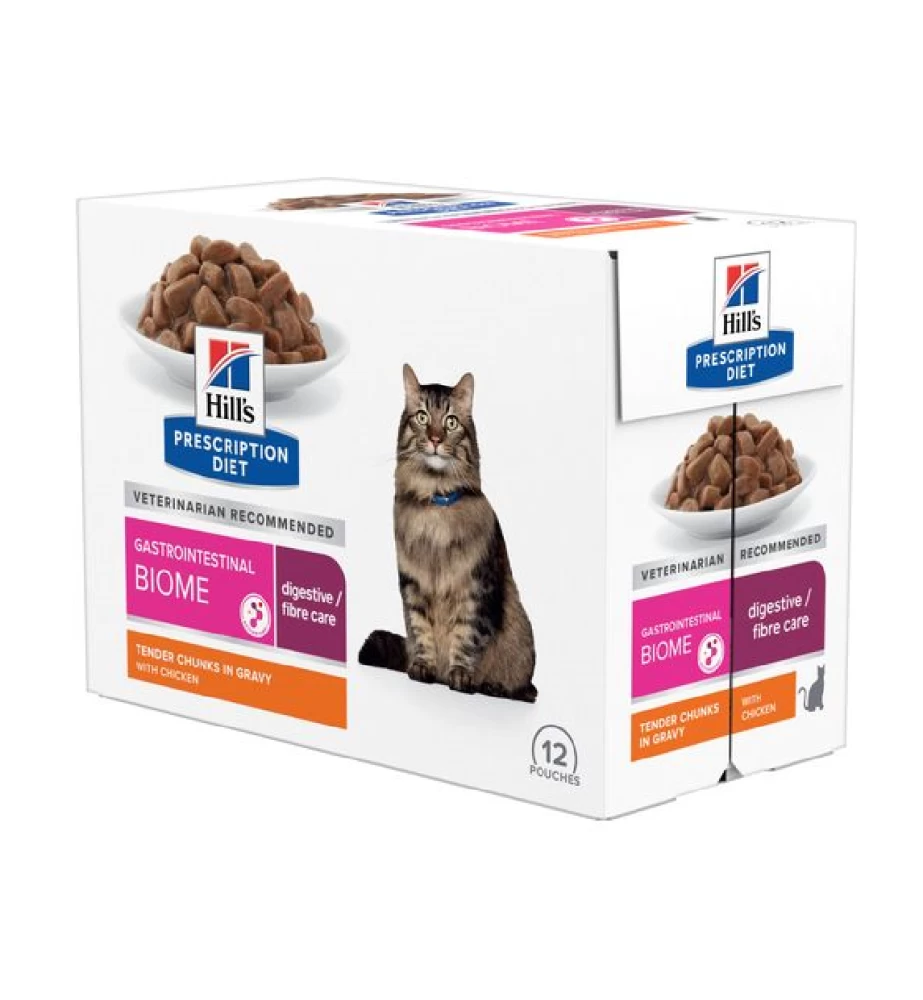Hill’s Prescription Diet Gastrointestinal Biome Kattenvoer is een complete vezelrijke natvoeding met een unieke mix van prebiotica waarvan klinisch is aangetoond dat het binnen 24 uur een regelmatige, gezonde ontlasting bevordert en helpt dunne ontlasting en diarree te voorkomen.