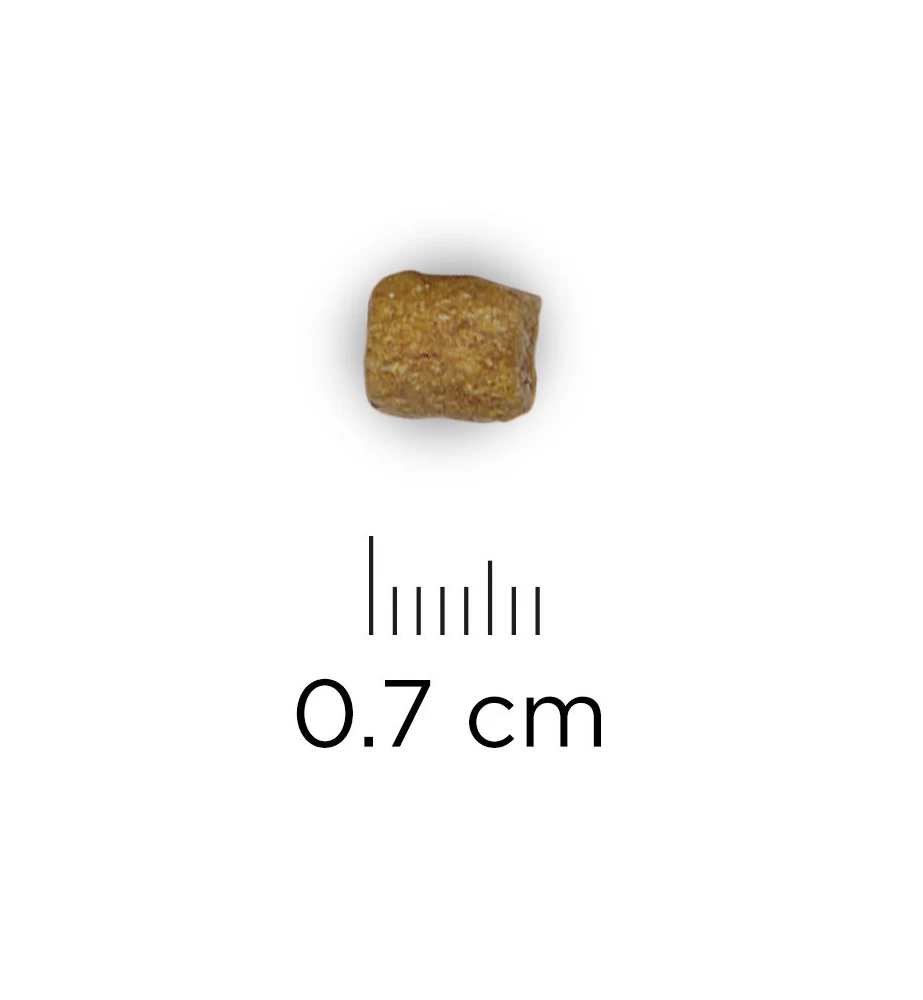 Maïs, Kip (30%) – en kalkoenmeel, Dierlijk vet, Maïsglutenmeel, Eipoeder, Brouwersrijst, Lijnzaad, Gedroogde bietenpulp, Eiwithydrolysaat, Mineralen, Vitaminen, L-carnitine, Cellulose, Sporenelementen, Taurine, L-arginine en Bèta-caroteen. Met een natuurlijk antioxidant (gemengde tocoferolen).