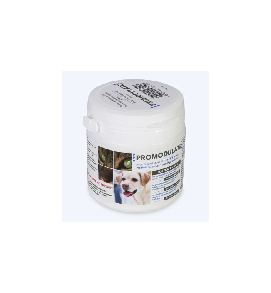 Promodulate bevat naast goede bacteriën ook elektrolyten en vitaminen om deze weer aan te vullen. De probiotische FOS (fructooligosaccharide) is ook aan de Promodulate toegevoegd om bij te dragen aan het normaliseren van de darmflora.