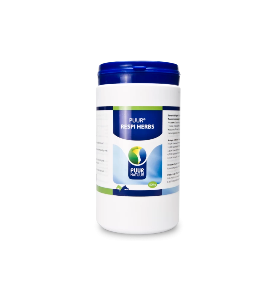 PUUR Respi herbs is een voedingssupplement voor honden, katten en paarden ter ondersteuning van de luchtwegen.
