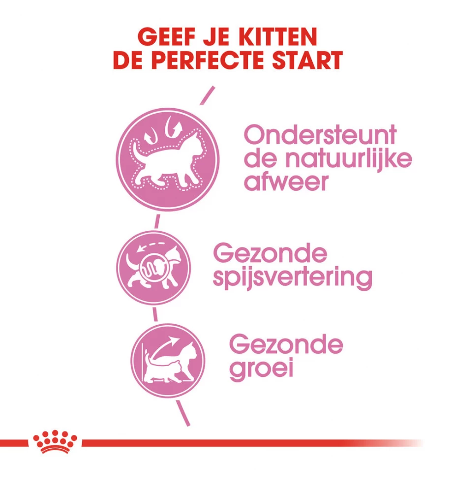 Deze op maat gemaakte voeding bevat brokjes in saus met een optimale grootte, textuur en smaak voor opgroeiende kittens. Daarnaast ondersteunen voedingsstoffen zoals vitamine C en E de ontwikkeling van een gezond immuunsysteem. Er is aangetoond is dat deze antioxidanten een grotere hoeveelheid en snellere toename van antilichamen na de vaccinatie stimuleren.