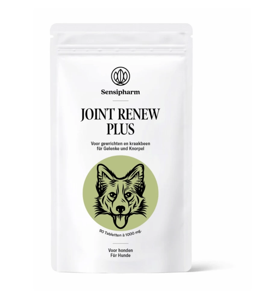 Joint Renew Plus van Sensipharm is een 100% natuurlijk voedingssupplement voor honden, katten, konijnen en cavia’s ter ondersteuning van de gewrichten. De Joint Renew Plus bevat zeer hoogwaardige natuurlijke ingrediënten zoals MSM, Sharkcartilage en Vitamine C. Het middel is veilig in gebruik en mag levenslang gegeven worden aan dieren van alle leeftijden.