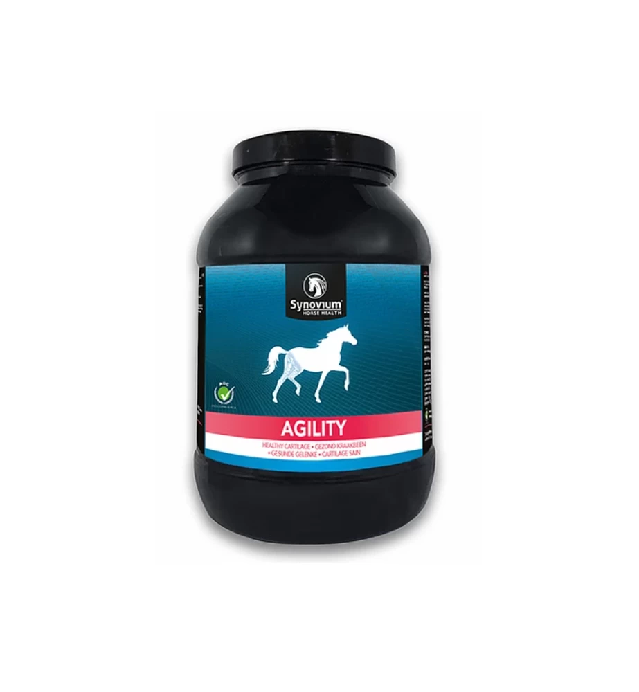 Synovium Agility is een voedingssupplement ter ondersteuning van behoud van gezond kraakbeen en soepele gewrichten bij paarden. Het positieve effect van het middel is aangetoond doormiddel van placebogecontroleerde studies. De Synovium Agility is hypoallergeen en 100% vrij van additieven. Het kan ingezet worden bij paarden die intensief werken of trainen, maar ook ter ondersteuning van de gewrichten bij oudere paarden of voor de ontwikkeling van een optimale kraakbeenkwaliteit en een gezond skelet bij veulens.