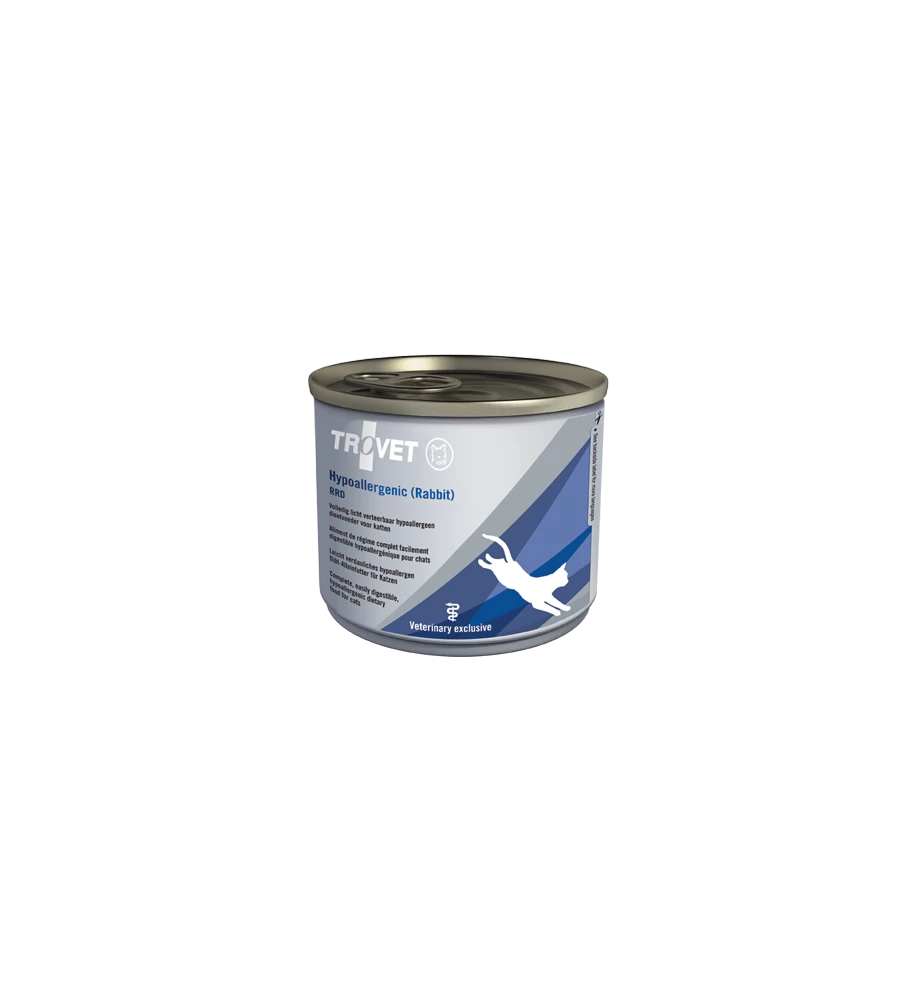 De Trovet Hypoallergenic Rabbit RRD voeding is een hypoallergeen dieet voor katten dat zo weinig mogelijk ingrediënten bevat, zodat de kans op een allergische reactie wordt geminimaliseerd. Alle Trovet hypoallergene diëten zijn gebaseerd op één (dierlijke) eiwitbron en één koolhydraatbron en bevatten alle essentiële voedingsstoffen in de optimale hoeveelheden. Het toevoegen van een vitaminen- en mineralenmix is dan ook niet nodig. Alle varianten Trovet hypoallergene dieetvoeding kunnen levenslang worden gegeven.