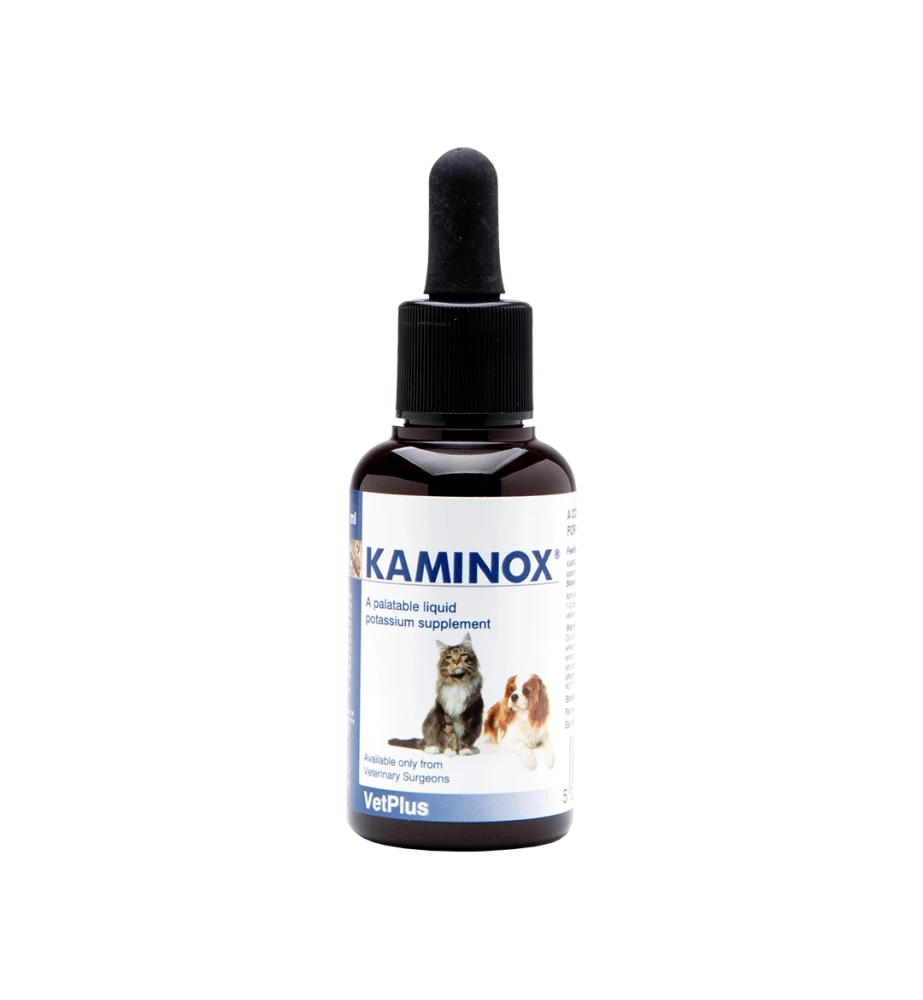 Kaminox van VetPlus is een voedingssupplement met een zeer hoog gehalte aan Kalium. Het kan gebruikt worden bij honden en katten met Nierproblemen en/of Hypokaliëmie.
